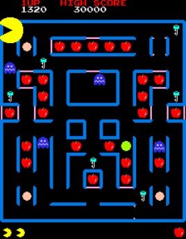 There were a ton of Pac-Man sequels, but this was always my favorite. Instead of eating boring old dots, you got to eat items that were special in earlier Pac-Man games, like keys and fruit. And by eating a special, yellow dot, you're Pac-Man became a giant Super Pac-Man that was immune to the ghosts wandering around. I liked it, but this was always a hard game to find for me.